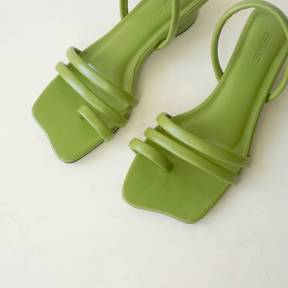 Featured in our new article. The Sandals vegan leather with 3cm heels and padded strap sandal with a First unique angled toe shape.