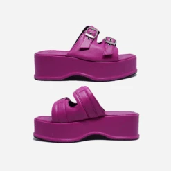 Kate is a buckle platform sandal featuring double metal buckle straps at the upper and a clogged platform. They elevate your modern and casual look instantly! Pair them with short dresses or skinny jeans and t-shirts to get an easy and edgy look.