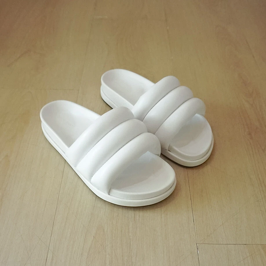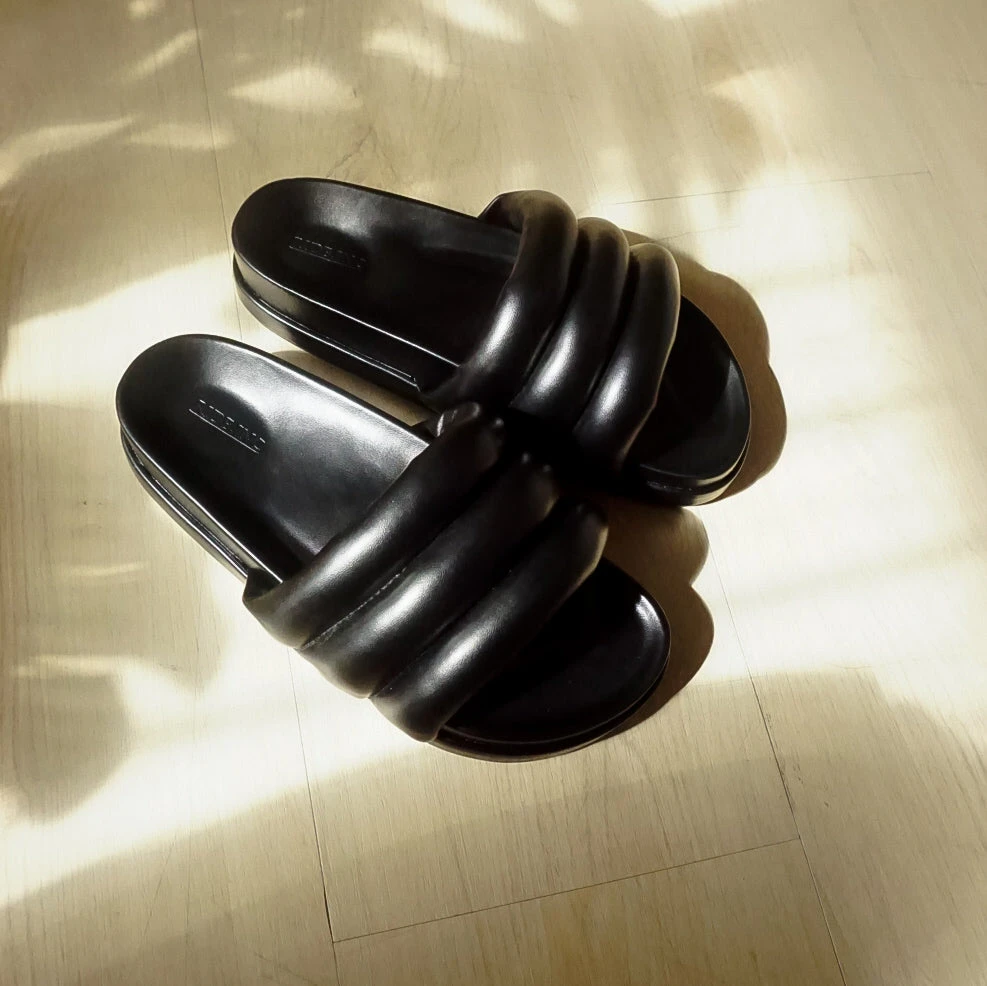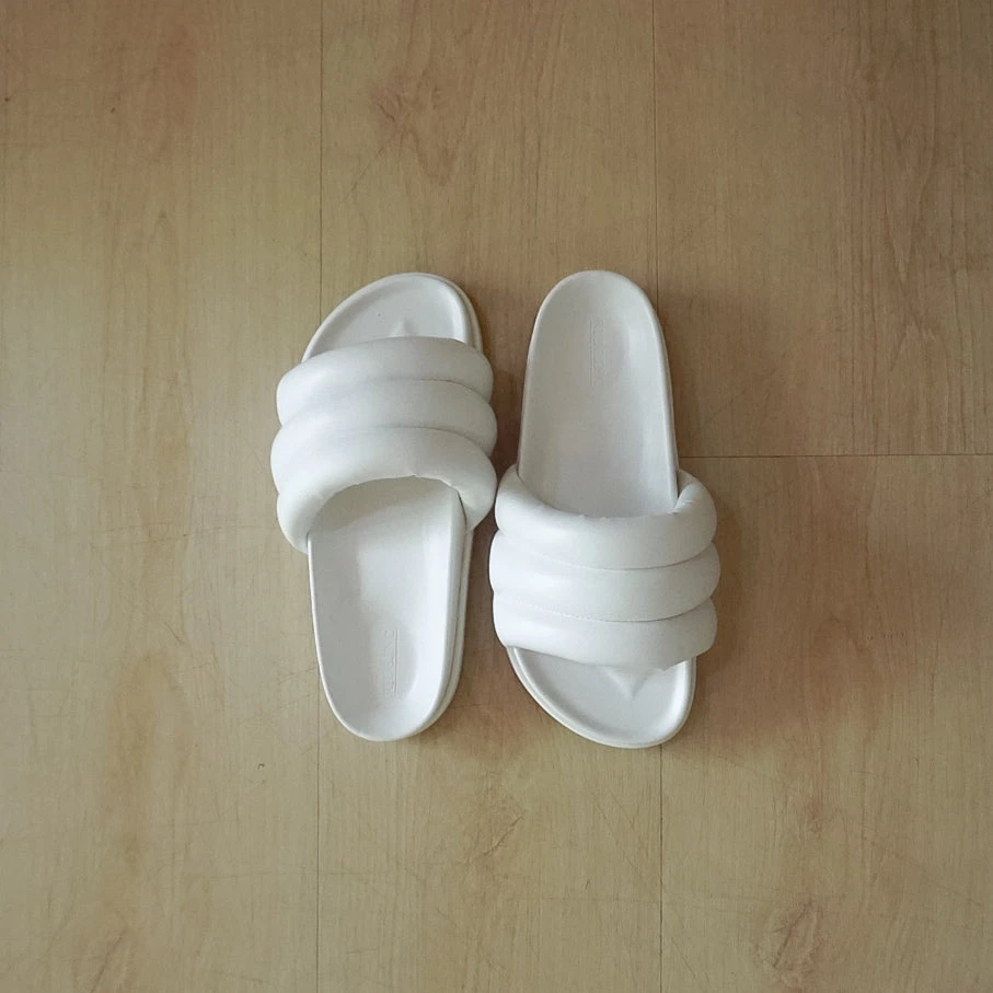 Kyo Sandals are slide puffy sandals. Kyo offers all-day comfort and is perfect for your off-duty or leisure outfits. Styling them with a hoodie, shorts, and any sling bags.